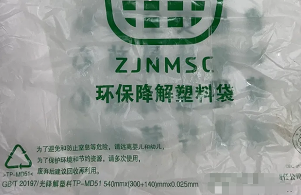 2.觀察外觀:全降解塑料袋的原材料是PLA、PBAT、淀粉或礦粉材料,在外袋上會有專門的標志,比如常見的“PBAT+PLA+MD”,而對于偽降解塑料袋,原料是PE等材料,常見的包括”PE-HD“等。
